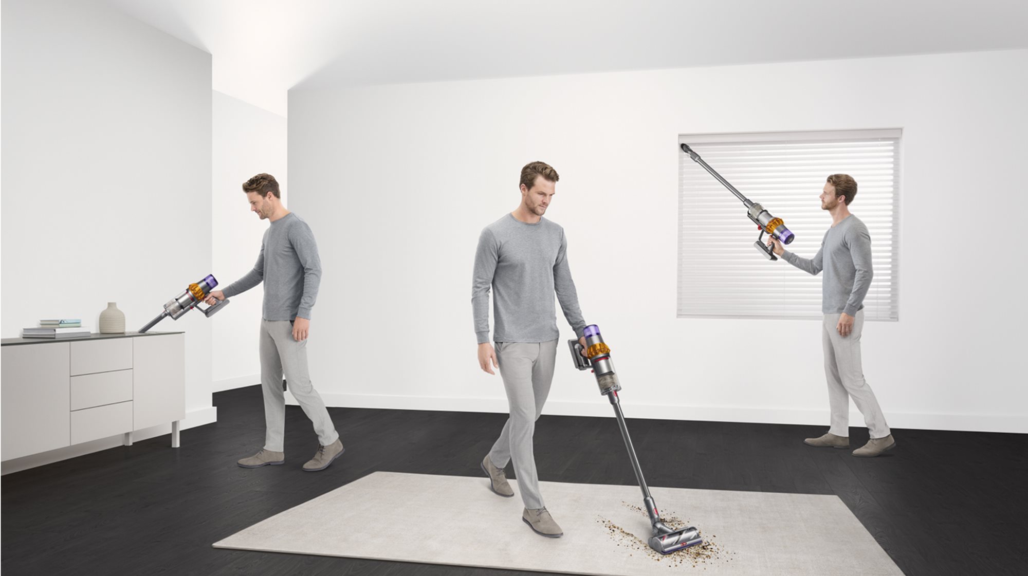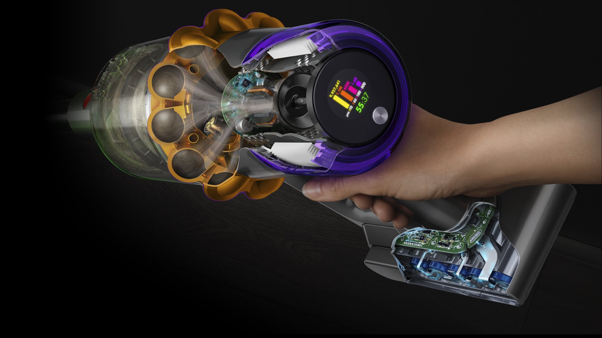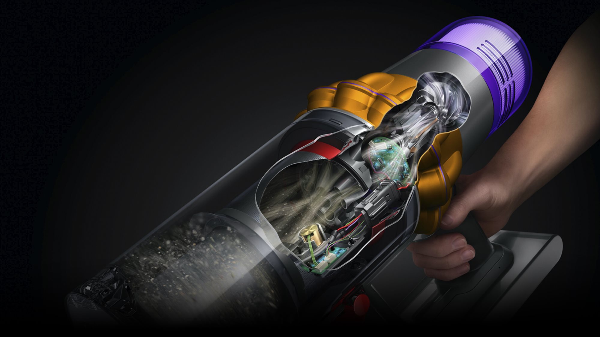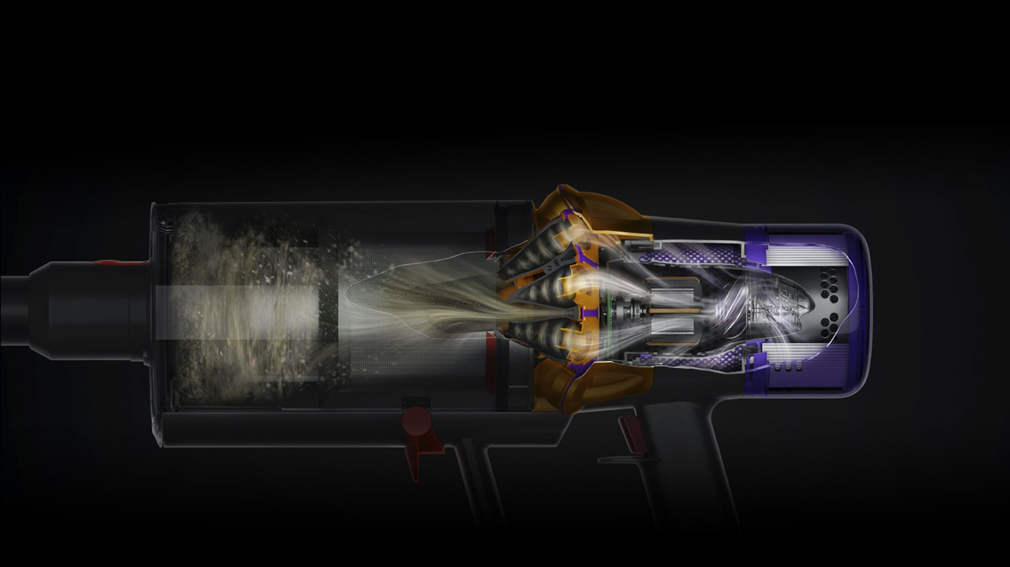 1Suction tested to EN IEC62885-4 CL5.8 and CL5.9, tested at the flexible inlet, loaded to bin full, in Boost mode against the cordless stick market. 2Best accuracy achieved in Auto mode. Auto ramp feature in Auto mode only. Testing based on average in home usage according to Dyson internal test data. Microscopic dust is defined as particles less than 100 microns. 3Applies in Eco mode on hard floor. Actual run time will vary based on power mode, floor type and/or attachments used. 4Dynamic Load Sensor technology only applies in Auto mode with the High Torque cleaner head attached. 5Filtration tested against ASTM F3150, tested in Boost mode by independent third-party, SGS-IBR Laboratories US in 2020.